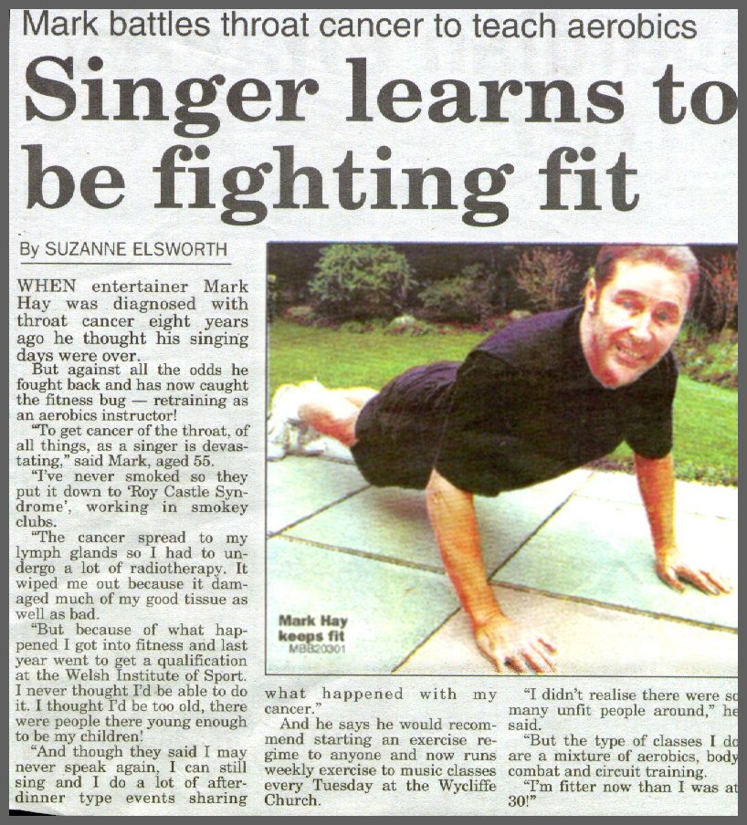 Mark was born in the North east of England in a small village called Teesville, just outside of Middlesbrough.From the age of seven he realised that he liked sport when he was chosen from a class of about thirty pupils to run in the 100 yards sprint.Between the ages of twelve and fourteen he represented his senior school at county level, competing in the 100 and 220 yards sprint and the relay. He was also a member of the school basketball team and at the age of fourteen was captain of the Rugbt team.For two years after leaving school (at the age of fifteen) he took up boxing, Judo, and weight training.On the completion of his apprenticeship as an electrician, (then twenty one) Mark made an unusual move and entered the world of show business as a band singer. He had always been interested in music, and during his teens had been a member of a couple of pop bands The Nightriders, The Escorts, and The Bill Sowerby orchestra, he also played the guitar and piano. This career was to take him all over the world, and with the release of two singles with E.M.I/Mother records,(909) (Venus) he appearing on fourteen major television shows. Mark has also sang on numerous radio broadcasts with the BBC Northern Radio Orchestra for BBC Radio Two.Over the intervening years Mark would keep fit with regular jogging, swimming, and the occasional game of golf. He also took up martial arts (Kickboxing)Devastating news came in 1994, when he was informed that he had two tumours in his throat. Further tests confirmed that it was cancer, and he had to under go surgery and a great deal of radiotherapy treatment to remove the toumours. The specialist informed him that it was possibly caused through working in smokey atmospheres, and he had never smoked. (The Roy Castle Syndrome) He also mentioned that he may never sing again because of the damage caused by the radiotherapy.As well as the usual side effects of the radiotherapy i.e. loss of saliva, taste etc he lost a considerable amount of muscle in his left shoulder, and on completion of the treatment he started to re-build the muscle with weight training. After a period of time he joined a local health centre and started circuit training. This was the start of his interest in exercising to music as he could see the benefits it was bringing not only to him but to other participants.In 1999/2000 Mark acquired an "Exercise To Music" teaching qualification NVQ level 2 in theory and practice, and In April 2002 he completed the London Marathon, raising £2,782 for cancer research.(Association For International Cancer research)Up until 2009 Mark was singing at least two/three nights per week, running a small entertainment's agency in Warrington Cheshire, and teaching“Exercise to Music” classes, specialising in fitness for the over fifties.In 2010 after being in the entertainment business for over 50 years Mark thought it was time to hang up his vocal chords, retire and move to France, however within a short period of time he was back singing and playing guitar with a French Band called "Mijo". New